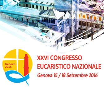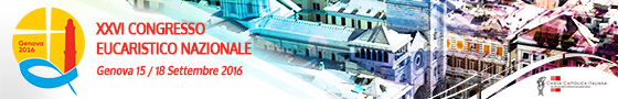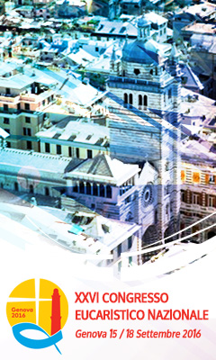 Intento del logo è quello di restituire tramite pochi segni l’immagine dell’Eucaristia e di Genova.